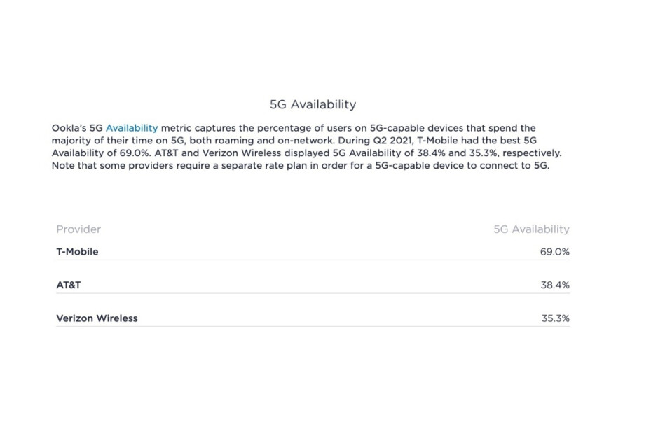 Tenga en cuenta que la disponibilidad de 5G en la interpretación de Ookla representa el porcentaje de usuarios con 5G-dispositivos habilitados que de hecho son capaces de pasar”la mayor parte de su tiempo”conectados a una señal moderna en lugar de la mera cobertura geográfica de dicha señal.