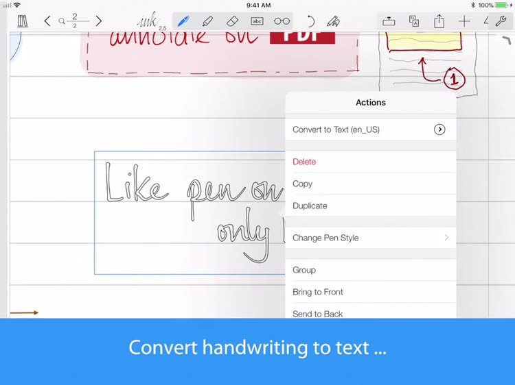 GoodNotes 4 le permite anotar fácilmente archivos PDF, así como Microsoft Word y Documentos de PowerPoint. Puede escribir notas a mano en documentos, resaltar texto y acercar para tomar solo el área correcta. La aplicación también incluye funciones para completar y firmar formularios, sincronización de iCloud y una búsqueda conveniente.