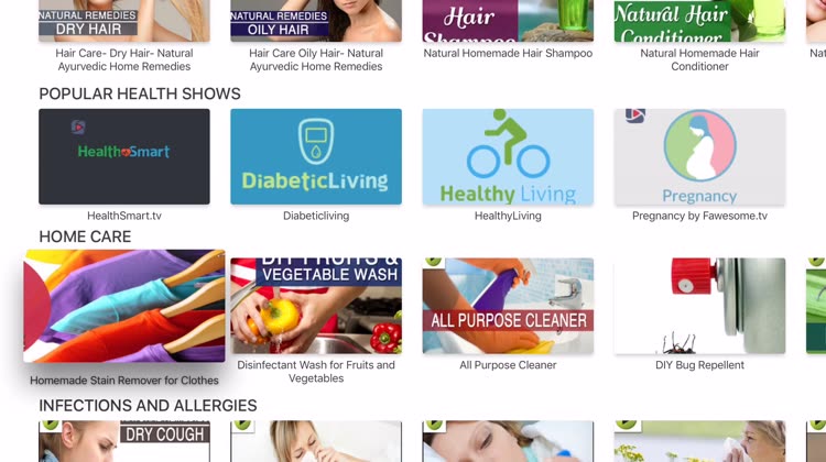 Homeveda ofrece información sobre muchos temas relacionados con la salud. problemas y puede ayudar a responder las preguntas que pueda tener. Vea síntomas y remedios caseros para problemas de salud comunes con una aplicación conveniente y fácil de usar para Apple TV.