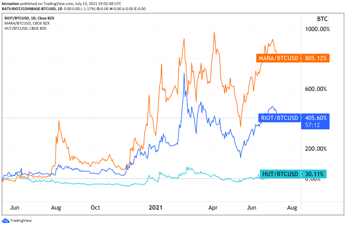 MARA, RIOT y HUT denominados en BTC desde el 11 de mayo de 2020