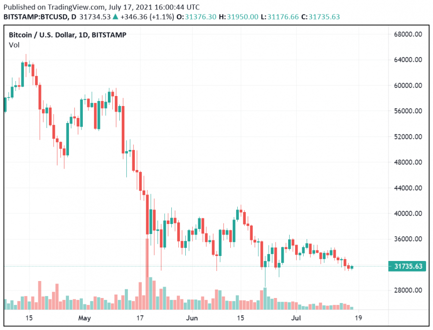 El precio de Bitcoin ha sufrido un golpe ya que el precio se negocia por debajo de la marca de 32k | Fuente: BTCUSD en TradingView.com
