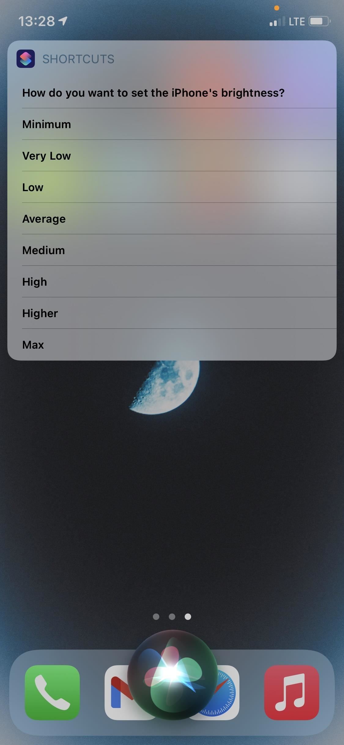 La primera es Siri, que es increíblemente fácil de usar. Todo lo que necesitas hacer es abrir Siri y decir”Establecer brillo”, que es el nombre del acceso directo. Tan pronto como lo diga, aparecerá el menú Establecer brillo.