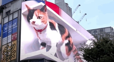 El gato de Internet más viral del momento es un gatito virtual atrapado en una valla publicitaria en el distrito Shinjuku de Tokio, Japón.