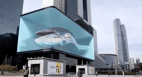 El momento viral WAVE de Corea del Sur fue producido por una empresa local llamada D’strict , y era solo uno de una serie de impresionantes vallas publicitarias digitales de ilusión anamórfica que incluían una ballena virtual flotando sobre los peatones y un grupo de humanoides fantasmales que aparecen para penetrar los límites de la pantalla.