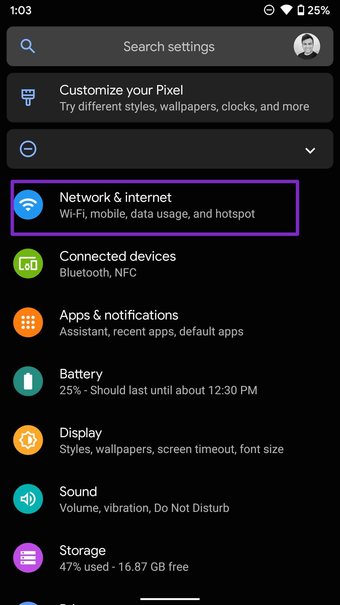 Paso 2: Abra el menú de datos móviles y Wi-Fi.