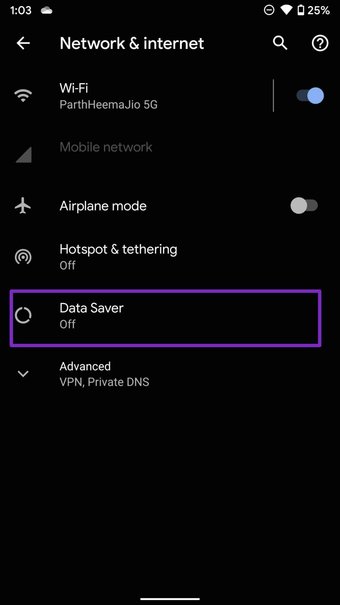 Paso 3: Toque en Ahorro de datos y desactive la opción en el siguiente menú.