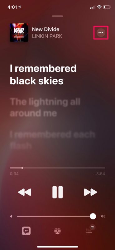 Ahora podrás ver la la letra en vivo de la canción mientras se está reproduciendo. Toque el ícono de tres puntos para acceder a más opciones.