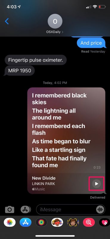 Es posible que esté familiarizado con una función llamada Live Lyrics que permite a los usuarios ver la letra de la canción en tiempo real mientras se reproduce. Con las versiones recientes de iOS, Apple ha llevado esta función al siguiente nivel. Ahora puede compartir una parte de estas letras con sus contactos. Pero, la mejor parte de esta función es que también enviarás un clip de la canción que también incluye estas letras.