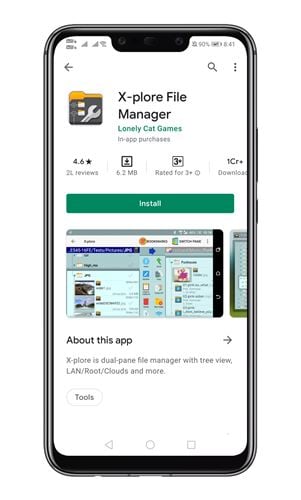 Paso 1. En primer lugar, diríjase a Google Play Store e instale Aplicación X-plore File Manager .