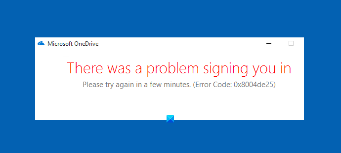 Si ve con frecuencia OneDrive Código de error 0x8004de25 o 0x8004de85 cada vez que intenta iniciar sesión en OneDrive en su Windows 10 PC, entonces esta publicación puede ayudarlo.