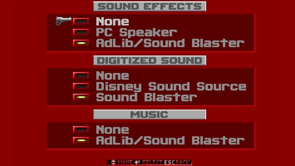 La pantalla de selección de la tarjeta de sonido de Wolf3D