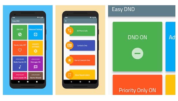 Con Easy DND, puede alternar No molestar completo, solo prioridad, contactos destacados, llamadas repetidas, etc.