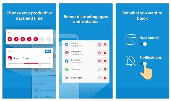 Bueno, AppBlock-Stay Focused es una de las aplicaciones de No molestar mejor calificadas disponibles en Google Play Store. Con AppBlock-Stay Focused, puede bloquear fácilmente aplicaciones, sitios y notificaciones.