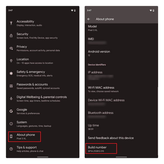 1. Abre la aplicación Configuración y presiona” Acerca del teléfono “. Ahora, desplácese hacia abajo hasta encontrar el”Número de compilación”y tóquelo siete veces. Ahora ha habilitado el modo de desarrollador en su dispositivo Android.