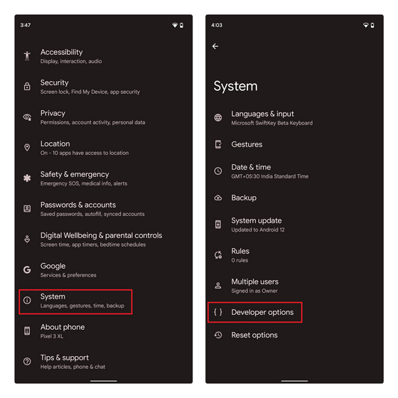 2. Vuelve a la página de inicio de Configuración y navega a” Sistema-> Opciones de desarrollador “para acceder a las opciones de desarrollador.