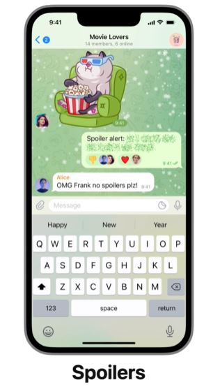 Otra característica se llama Spoilers y aporta una nueva experiencia divertida a la mensajería. Permite a las personas ocultar ciertas partes de un mensaje con el uso de formato Spoiler . El mensaje solo será completamente visible una vez que un usuario lo toque. Telegram también tiene una función de traducción para que los usuarios traduzcan fácilmente desde la aplicación. Esta función está disponible para todos los usuarios de Android, pero para dispositivos iOS con iOS 15 y más.