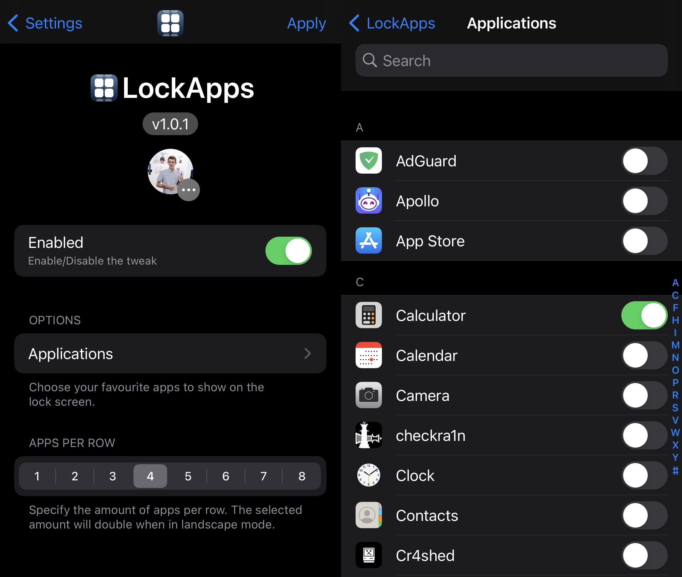 El desarrollador de iOS ginsudev logra un equilibrio favorable entre los dos con el lanzamiento de un nuevo jailbreak tweak llamado LockApps , ya que reemplaza el acceso directo de la aplicación de cámara independiente de la pantalla de bloqueo por uno que apunta a una página similar a un cajón de aplicaciones que contiene todas las aplicaciones desea acceder más rápido.