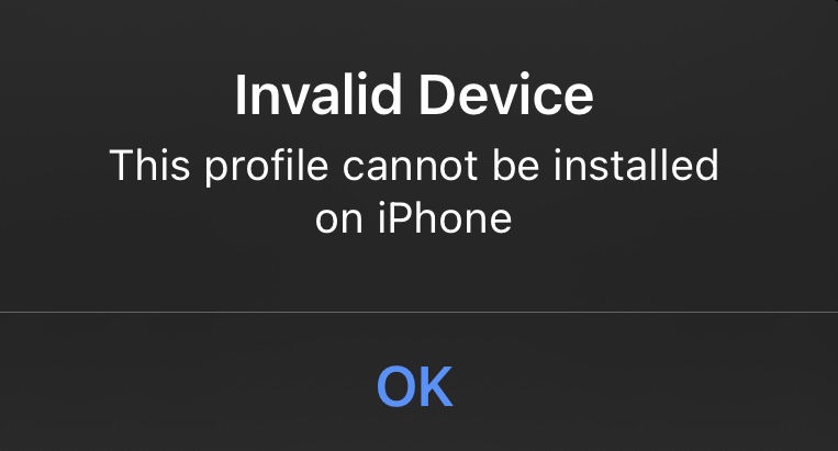 En nuestras pruebas, confirmamos que los perfiles de configuración diseñados específicamente para tvOS podrían volver a instalarse en un iPhone o iPad que tuviera instalado el ajuste TrustEvaluator en eso. Esto significa que si se encontró con el”Dispositivo no válido; Este perfil no se puede instalar en el iPhone ”mensaje de error en el pasado, entonces esto ya no aparecería al intentar instalar dicho perfil.