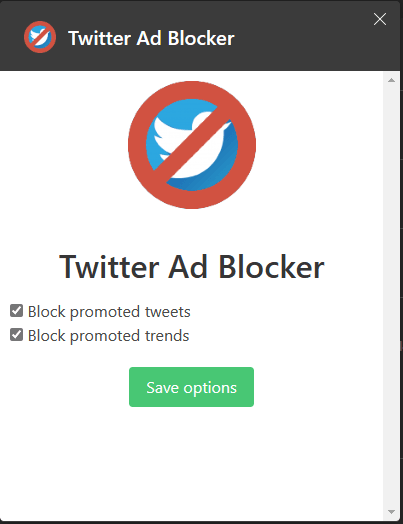Twitter Ad Blocker es un complemento gratuito de Chrome y Firefox para bloquear tweets promocionados y promover tendencias en Twitter . Esta es una extensión simple y de código abierto que puede usar para deshacerse automáticamente del contenido promocionado en Twitter. Le ayudará a mantener su cronología de Twitter ordenada y nunca encontrará anuncios y tendencias molestos.
