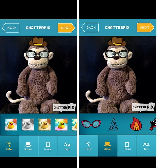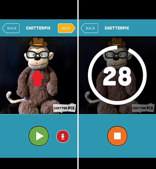 ChatterPix Kids es una aplicación gratuita para Android e iOS para crear imágenes que hablan para la enseñanza interactiva gratis . Le permite seleccionar una imagen y asignarle un audio grabado de 30 segundos. Además, puede aplicarle filtros y pegatinas y luego exportar la imagen animada como un video. Básicamente, le permite agregar una boca habladora a cualquier imagen, por lo que la animación final se verá como si estuviera hablando.