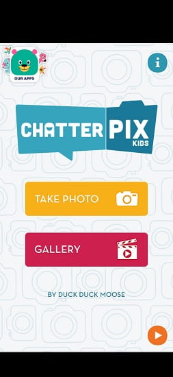 Puede instalar ChatterPix Kids para iOS desde aquí y para Android desde aquí . No es necesario registrarse ni registrarse, y puede comenzar inmediatamente después de instalarlo. Simplemente comience eligiendo una imagen de la galería. O puede capturar una nueva foto y continuar con ella.