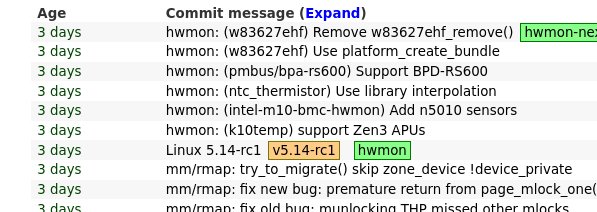 Aterrizando en”hwmon-siguiente”justo después del etiquetado de Linux 5.14-rc1 que marca el final formal del trabajo de funciones para el ciclo actual, estaba el controlador k10temp que agregó soporte para el monitoreo de temperatura de la APU AMD Zen 3 en Linux.