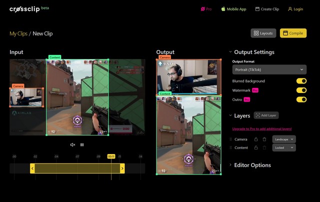Desarrollado por Streamlabs, Crossclip tiene como objetivo ayudar a los streamers a compartir fácilmente su contenido en otras plataformas de videos cortos. Incluye algunas funciones inteligentes para editar clips de Twitch y crear un video que se puede ver en Instagram, TikTok, YouTube Shorts. Por ejemplo, Crossclip te permite crear un video de formato vertical para TikTok en el que los espectadores pueden ver el transmisor y el juego sin recortes visibles.
