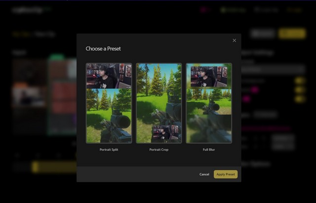 Además, la aplicación también ofrece algunos diseños preestablecidos para el vídeo de salida, como una vista dividida vertical, una vista recortada vertical y una vista borrosa completa. Los usuarios pueden elegir entre estas tres opciones y hacer clic en el botón”Aplicar ajuste preestablecido”para aplicar el diseño de salida.