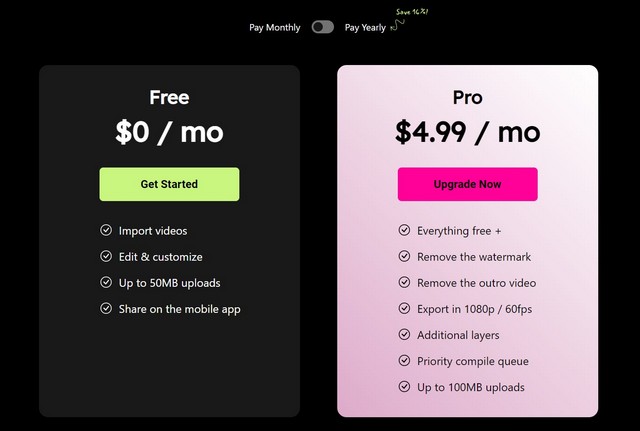 Ahora, vale la pena mencionar que Crossclip es esencialmente una aplicación de uso gratuito, pero viene con un modelo de suscripción. Por lo tanto, si los usuarios desean obtener más opciones de edición o eliminar la marca de agua Crossclip y la salida de sus videos, pueden actualizar al plan Pro por $ 4.99 al mes o $ 49.99 al año.