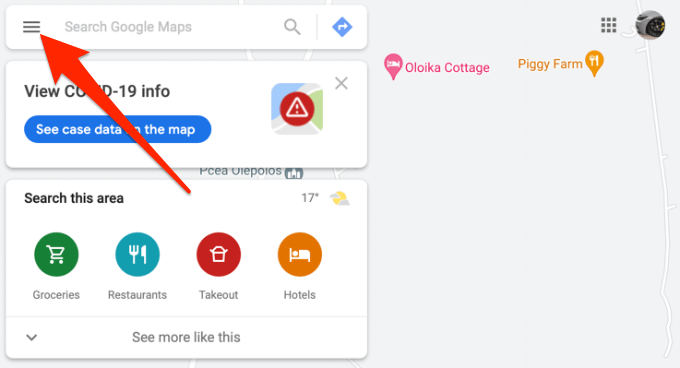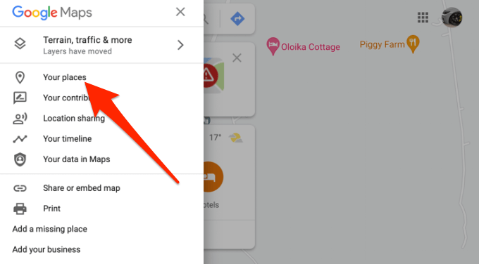 Abra Google Maps en su computadora, seleccione Iniciar sesión en la parte superior derecha de la pantalla e inicie sesión con su cuenta de Google. Seleccione Menú .