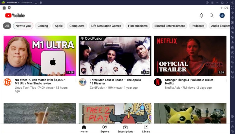 Estas son capturas de pantalla de la aplicación de YouTube renovada que se ejecutan en un emulador de Android (Bluestacks ) con una cuenta de Google iniciada: