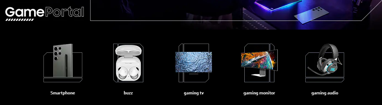 Game Portal es una tienda en línea de Samsung donde los clientes pueden comprar productos de juegos que van desde teléfonos inteligentes, televisores, monitores de juegos y PC hasta accesorios de juegos como auriculares, SSD de alto rendimiento y más.