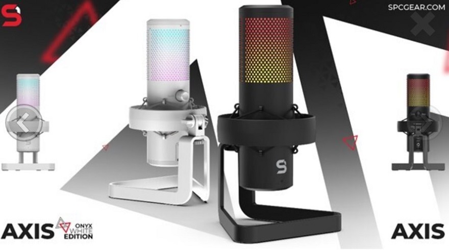 Eurooppalaisen SilentiumPC:n pelimerkki SPC Gear lanseeraa upouuden Streaming USB-mikrofonien sarjan nimeltä AXIS. AXIS on monikäyttöinen high-fidelity-mikrofoni, jossa on säädettävä suuntaustekniikka. Se on suljettu kestävään metallirunkoon ja asennettu paksun ja vakaan alustan päälle. AXIS-mikrofonin ominaisuuksia ovat äänityksen äänenvoimakkuuden säätönuppi, 3,5 mm:n miniliitin kuulokkeiden liittämistä varten, potentiometri äänenvoimakkuuden säätöön, kosketusmykistyspainike ja jopa säädettävä RGB-taustavalo.
