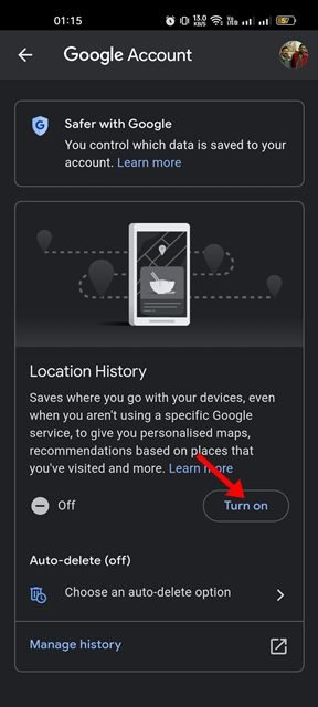 Google-tililläsi on oltava sijaintihistoria käytössä, jotta voit tarkastella Google Mapsin aikajanaa. Näin voit ottaa sijaintihistorian käyttöön Androidissa.
