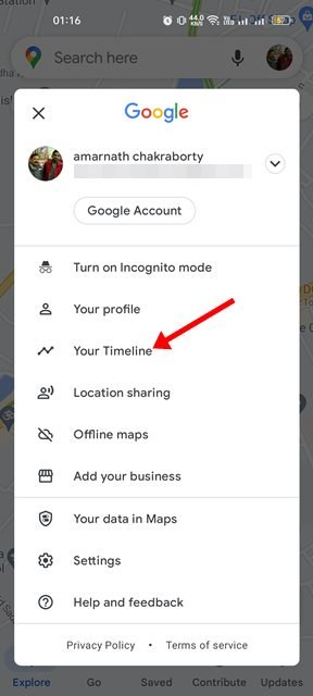 Vaiheet Google Mapsin aikajanan tarkistamiseen Androidissa