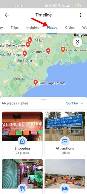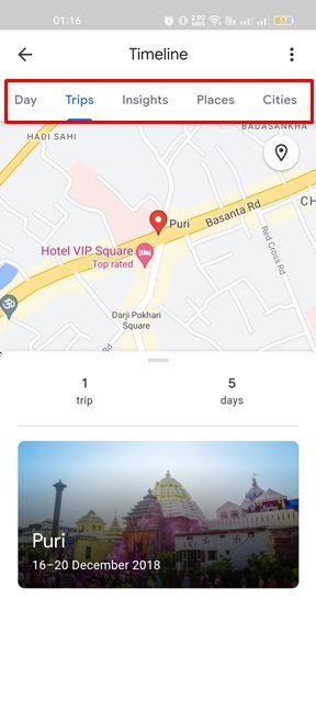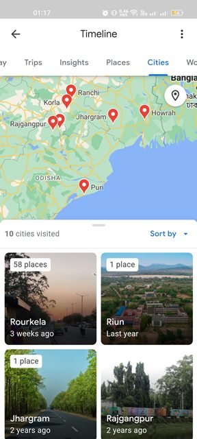 5. Sinun on tutkittava jokainen osio nähdäksesi sijaintihistorian. Jos esimerkiksi valitset Kaupungit-välilehden, aikajanalla näkyy niiden kaupunkien lukumäärä, joissa olet ollut.