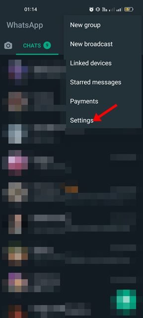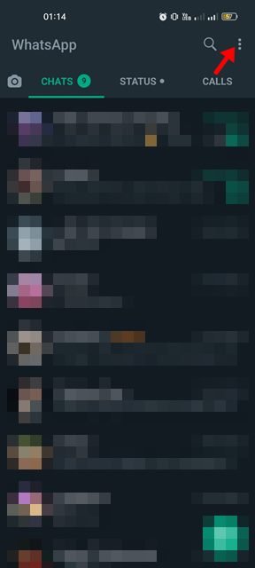 1. Avaa ensin WhatsApp-sovellus älypuhelimellasi. Napauta seuraavaksi kolmea pistettä oikeassa yläkulmassa.