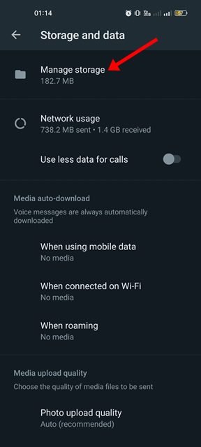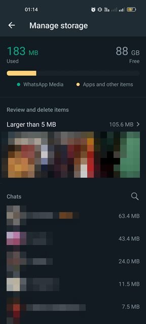 5. Nyt näet, kuinka paljon tallennustilaa WhatsApp käyttää.