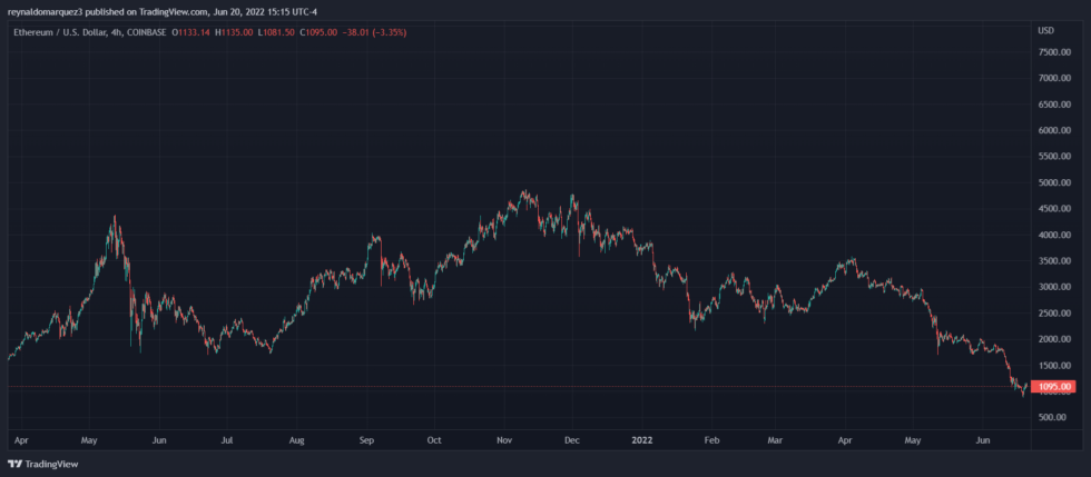 Ethereumin perustamisesta vuonna 2014 lähtien on ollut samanlaisia tai pahimpia laskuja. Vuonna 2017 kryptovaluutta saavutti kaikkien aikojen ennätyksensä lähellä 1 500 dollaria, mutta putosi alle 100 dollarin seuraavien kuukausien aikana.