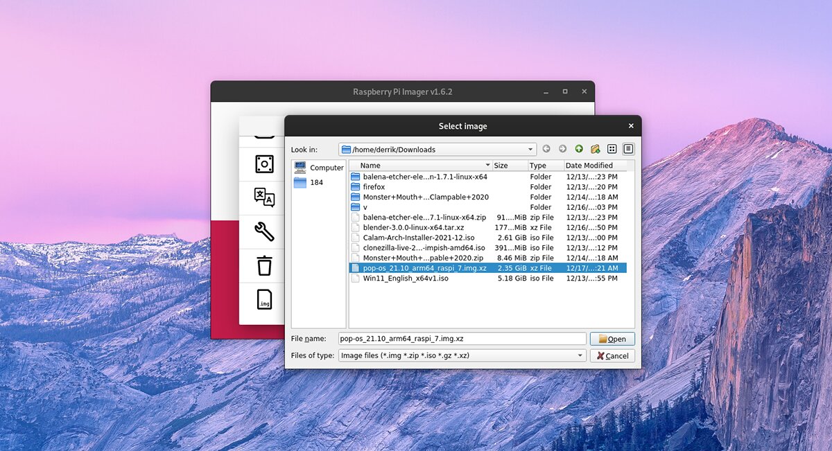 Étape 2 : Après avoir sélectionné le bouton « Choisir le système d’exploitation », recherchez l’image « pop-os_21.10_arm64_raspi_7.img.xz » téléchargée plus tôt dans cet article et sélectionnez-le pour ajouter Pop_OS à l’outil d’imagerie Raspberry Pi.
