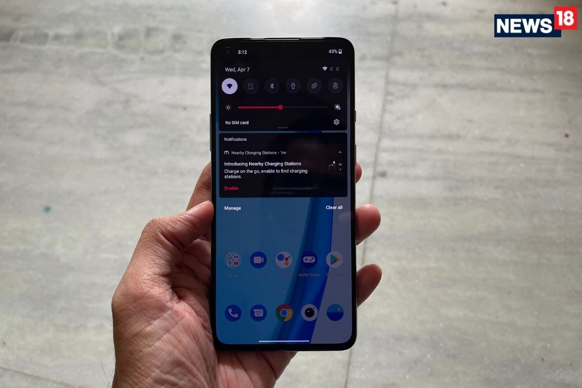 L’écran de 6,55 pouces est impressionnant, non seulement pour le type de dynamisme qu’il offre, mais aussi pour le fait qu’il est le plus petit des trois téléphones OnePlus 9 et pourtant vous ne pensez jamais qu’un peu plus d’espace sur l’écran aurait été mieux. Au moins, en parcourant des pages Web, je n’ai pas rattrapé mes lectures sur l’application Kindle, passé du temps sur Twitter ou même édité des photos. Il a une résolution de 2400 x 1800 pixels et prend en charge le taux de rafraîchissement de 120 Hz qui devient maintenant normal pour les smartphones. Dans l’ensemble, c’est ce que OnePlus appelle l’affichage fluide. Il est incroyablement lumineux et assez vif aussi, ce dernier que vous pouvez bien sûr contrôler avec les paramètres de couleur dans le menu. Comme les frères et sœurs plus chers, cela a également plus de points de luminosité, ce qui signifie que les changements de luminosité automatiques sont plus doux et moins visibles. Les couleurs semblent vraiment sophistiquées-ce que je préfère, ce sont les paramètres d’étalonnage de l’écran P3, car j’aime le plus cette vivacité tamisée des couleurs. Cet écran ne dispose pas de l’option Tonalité de confort du OnePlus 9 Pro, qui modifie essentiellement les couleurs de l’écran pour qu’elles correspondent à votre éclairage ambiant, afin de réduire la fatigue oculaire. Pourtant, l’écran n’a pas l’air déplacé non plus-vous ne faites pas cette transition discordante d’une lumière chaude autour de vous à un affichage de couleurs relativement froides, par exemple.