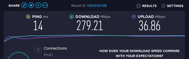 Bien que HBO Max nécessite une vitesse Internet suffisante pour diffuser de la vidéo, il a également besoin d’un temps de réponse rapide du serveur à votre appareil. Ce temps de réponse est appelé ping (ou lag, pour les joueurs). Vous pouvez vérifier cela en allant sur Speedtest.net et en exécutant un test de vitesse. Il vous montrera vos vitesses de téléchargement et de téléchargement et votre ping global en millisecondes.