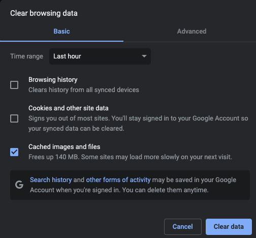 Dans Google Chrome, sélectionnez les trois points dans le coin supérieur droit, puis sélectionnez Plus d’outils > Effacer les données de navigation. Assurez-vous que la case”Images et fichiers mis en cache”est cochée, puis sélectionnez Effacer les données.