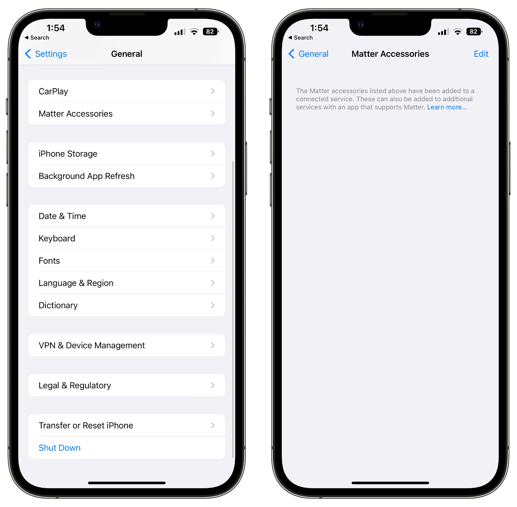 iOS 16.1 introduit une nouvelle section”Matter Accessories”dans l’application Paramètres, suggérant qu’Apple se prépare à la lancement à l’automne de la norme Matter smart home.