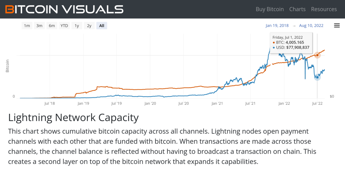 Le taux d’adoption du Lightning Network augmente actuellement à une vitesse étonnante. Le 1er juillet 2022, la capacité du Lightning Network a dépassé les 4 000 BTC, ce qui équivaut à plus de 77 millions de dollars de valeur dans tous canaux. Deux ans auparavant, ce nombre était inférieur à 1000 pièces, représentant moins de 10 millions de dollars en valeur. Comme on dit; lentement, puis brusquement, puis d’un coup. Bien que la technologie soit encore très naissante, il y a des avantages évidents à effectuer des transactions sur le Lightning Network. Même les banquiers tiennent à ce fait. Plus tôt cet été, des chercheurs de la Federal Reserve Bank of Cleveland ont rédigé un article intitulé « The Lightning Network : Transformer Bitcoin en argent. » L’article met en évidence ces avantages, citant le règlement instantané, les faibles frais et la réduction de la congestion sur la chaîne de temps Bitcoin, qui sont tous une aubaine pour l’adoption de Lightning.