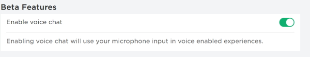 5. Et avant que vous ne vous en rendiez compte, le chat vocal sera activé sur votre compte Roblox. Vous pouvez vérifier la même chose en recherchant la bascule verte ou en l’essayant dans un jeu !