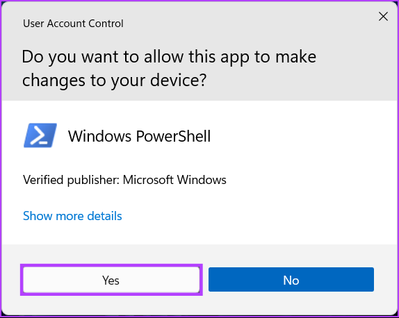 Étape 2 : Lorsqu’une invite de contrôle de compte d’utilisateur (UAC) s’affiche, cliquez sur Oui.