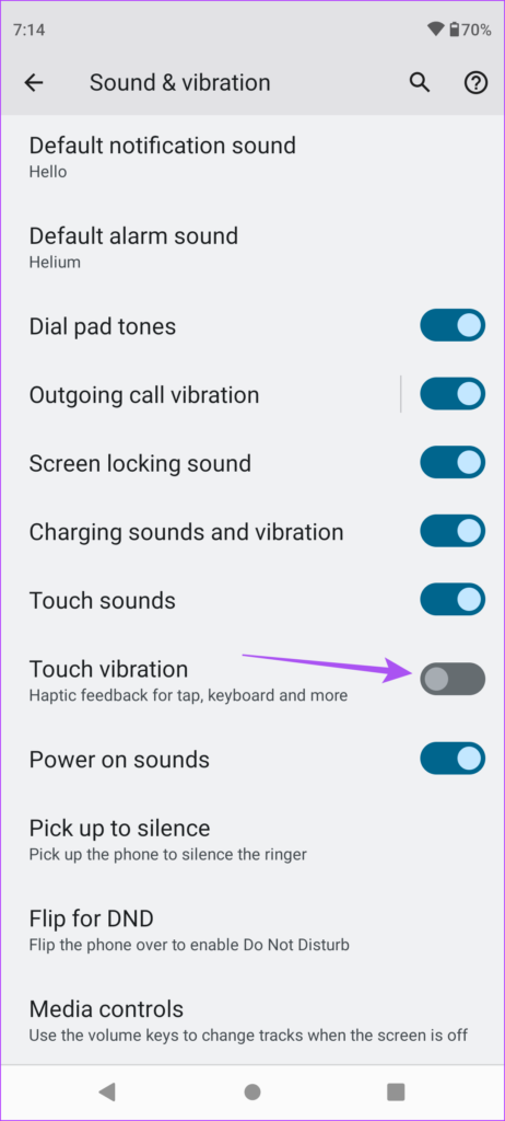 Étape 3 : Dans le menu Son et vibration, faites défiler vers le bas et activez Touch Vibration.