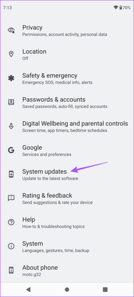 Étape 2 : Faites défiler vers le bas et appuyez sur Mises à jour du système.
