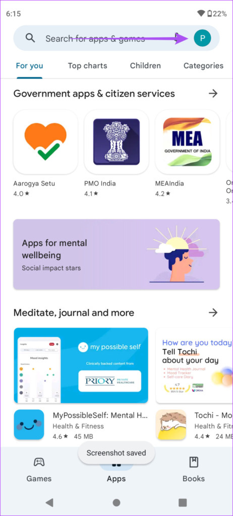 Étape 2 : Appuyez sur l’icône de votre profil en haut-coin droit.